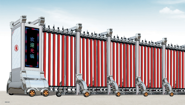 1、門體結(jié)構(gòu)特殊,工藝制管進行折彎焊接定型制成門體。門體永不變形堅固耐用。門體用大小連桿連接而成伸縮門,大連桿連接型式為古幣梅花式,小連桿連接成菱型式,美電動門觀大方,堅固耐用。不銹鋼伸縮門電機無需風冷,散熱快,耐高溫,同時帶有過熱保護裝置。