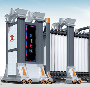 4.電動伸縮門體有LED彩燈,靜態(tài)顯示屏字樣,全遙控。